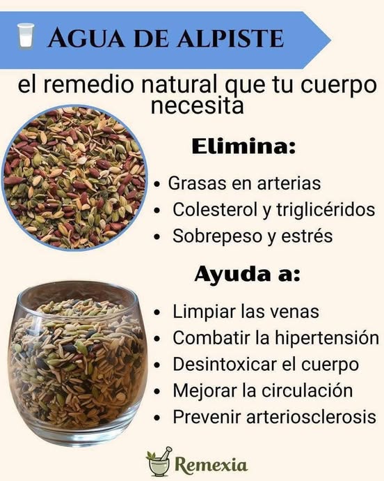 El agua de alpiste es una bebida natural hecha a partir de semillas de alpiste (generalmente lavadas y remojadas). Tradicionalmente se ha consumido por sus posibles beneficios para la salud. Aquí te resumo algunos de los más destacados: