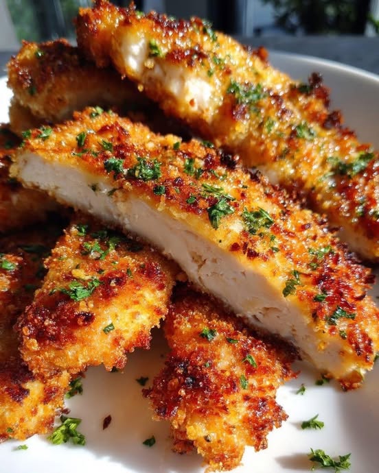 Tiras De Pollo Crustadas Con Ajo Y Parmesano En Freidora De Aire