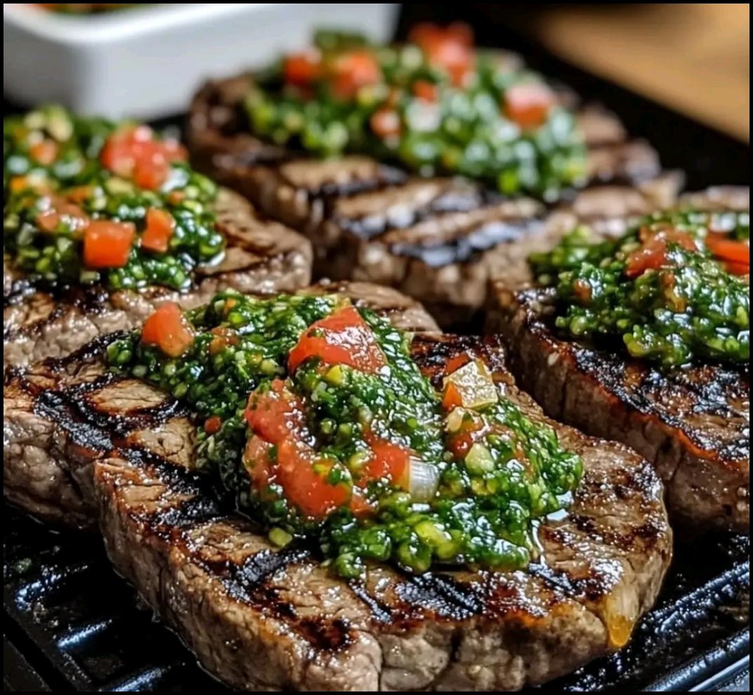 BISTEC A LA PARRILLA CON SALSA CHIMICHURRI.