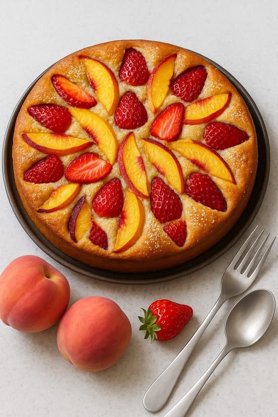 Bizcocho de Fresas y Melocotón 🍓🍑 — Jugoso, Frutal y Perfecto para el Verano