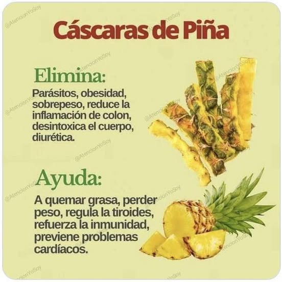 La cáscara de piña, aunque normalmente se descarta, tiene varios beneficios para la salud. Algunas de sus propiedades y usos más comunes incluyen: