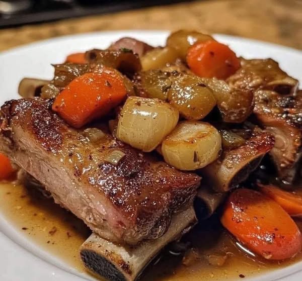 Deliciosa costilla de cerdo guisada con verduras