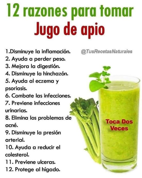 Hidratación: El jugo de apio tiene un alto contenido de agua, lo que ayuda a mantenerte hidratado durante todo el día.