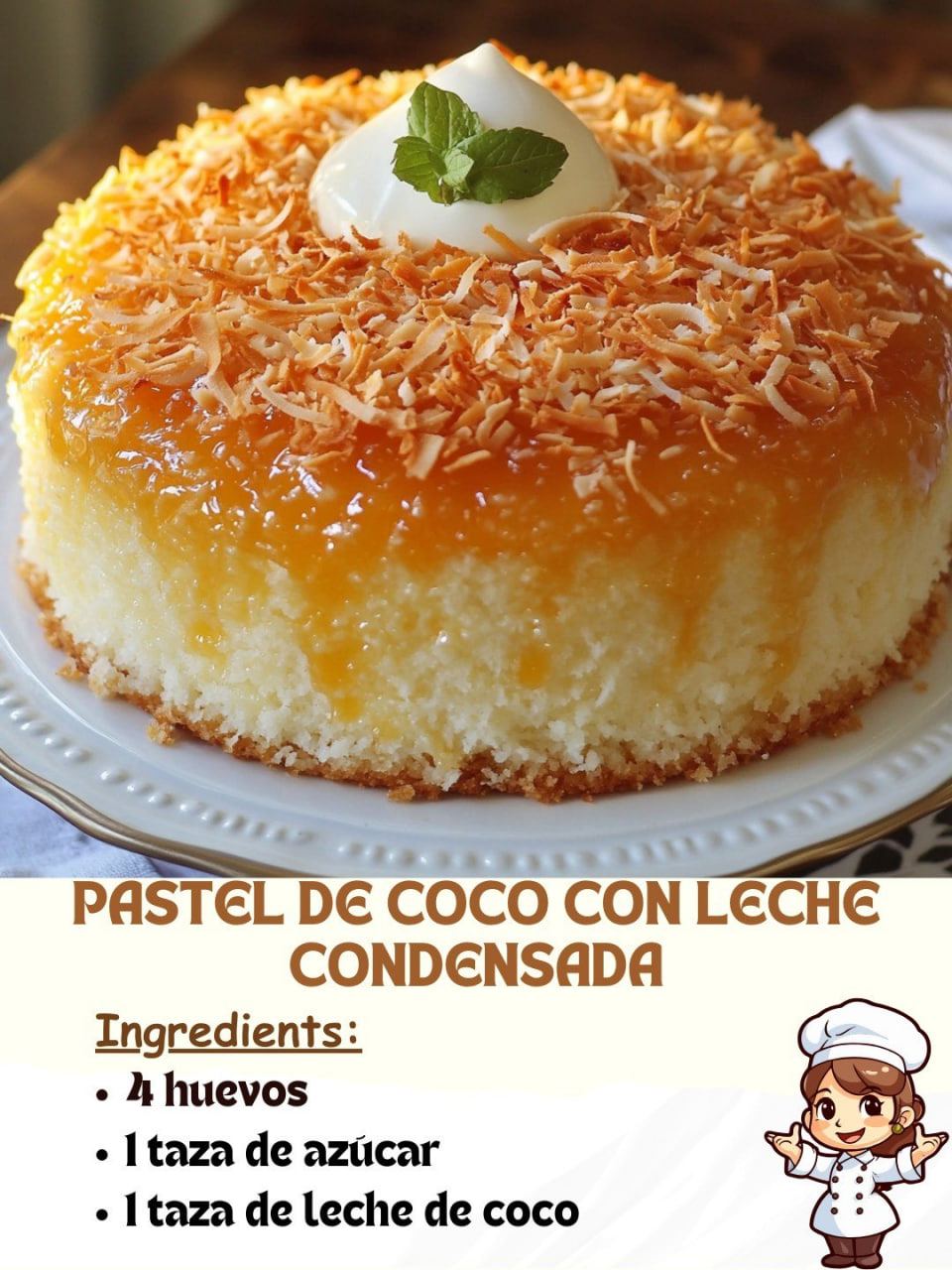 Agrega la leche condensada, la leche de coco y la mantequilla derretida a los huevos batidos. Mezcla bien hasta que todos los ingredientes líquidos estén completamente integrados.