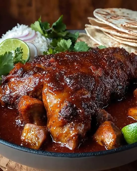 Pierna de Cerdo Festiva en Salsa Ahumada con Toque de Mezcal