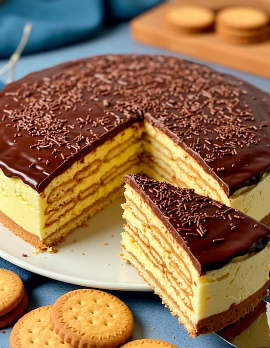 Cómo preparar Tarta de Galletas, Flan y Chocolate