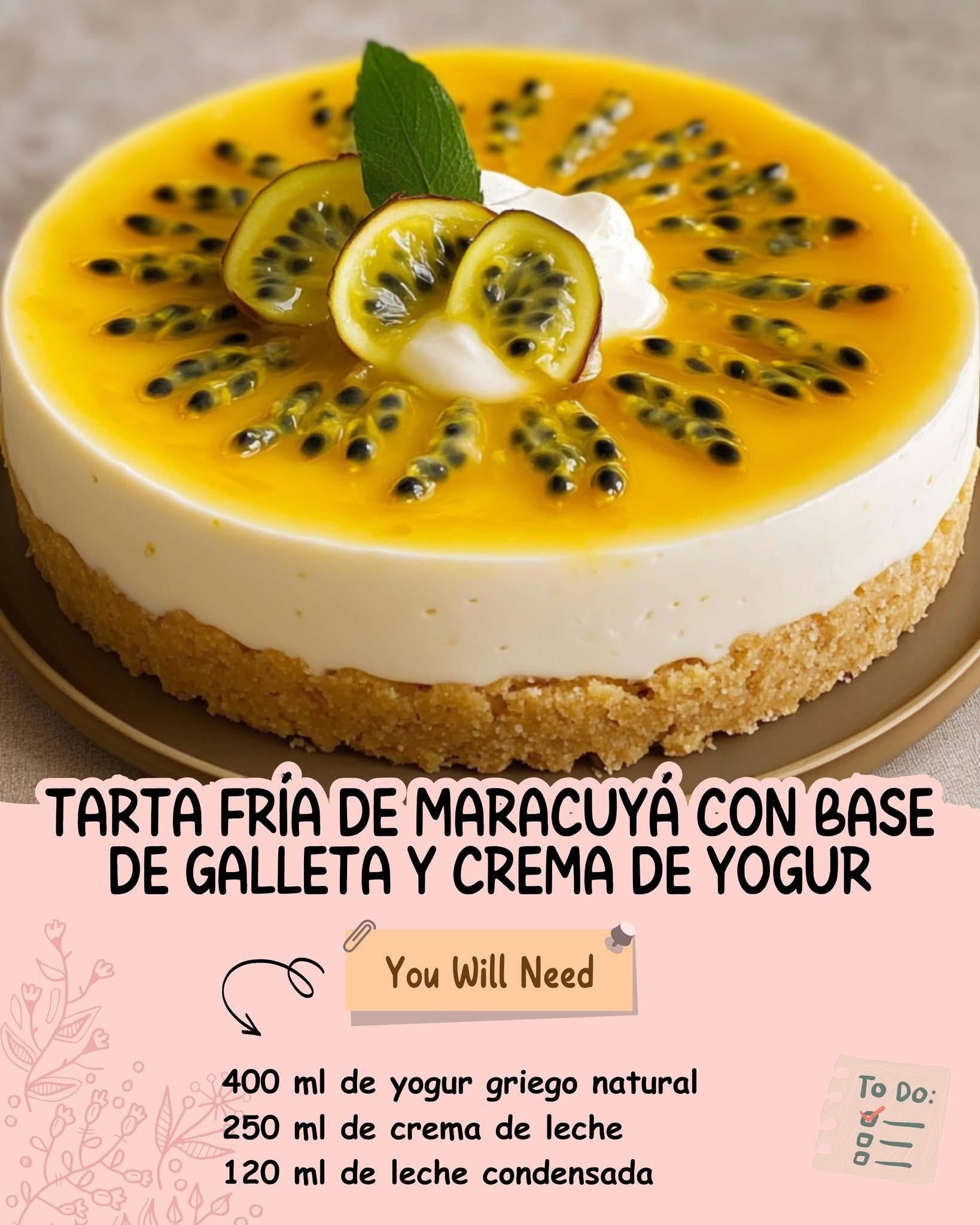 Tarta Fría de Maracuyá con Base de Galleta y Crema de Yogur